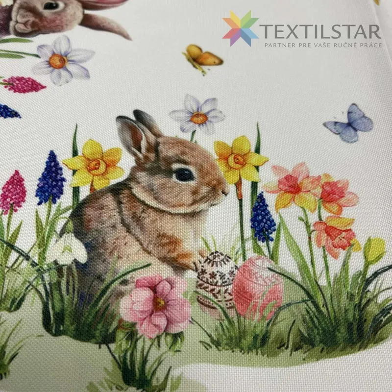 NOVINKA MOMENTÁlNE NIE JE NA SKLADE Velkonočný obrus 85x85 cm Zajkovia s lúčnymi kvietkami 13.50 € za ks