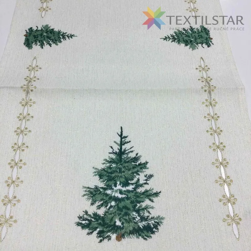 Vianočný behúň - Zelené stromčeky na bielom podklade