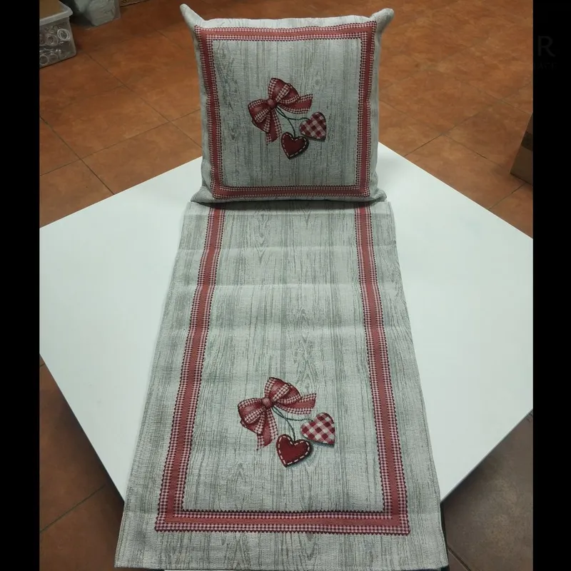 Gobelínová obliečka na vankúš s motívom mašle a srdiečok dotvorí príjemnú atmosféru v každom inetriéry. Obliečka je vyrobená na Slovensku z kvalitných stálofarebných materiálov. Obsahuje všitý zips, ktorý umožní jej pohodlné vymieňanie.