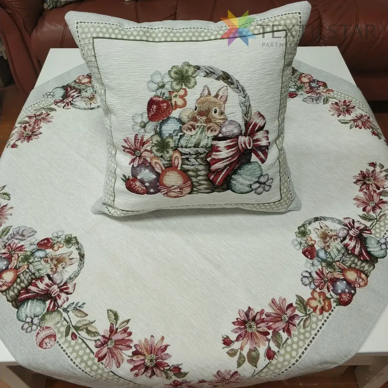 Gobelínová obliečka na vankúš chenille s veľkonočným motívom dotvorí príjemnú atmosféru v každom inetriéry. Obliečka je vyrobená na Slovensku z kvalitných stálofarebných materiálov. Obsahuje všitý zips, ktorý umožní jej pohodlné vymieňanie.